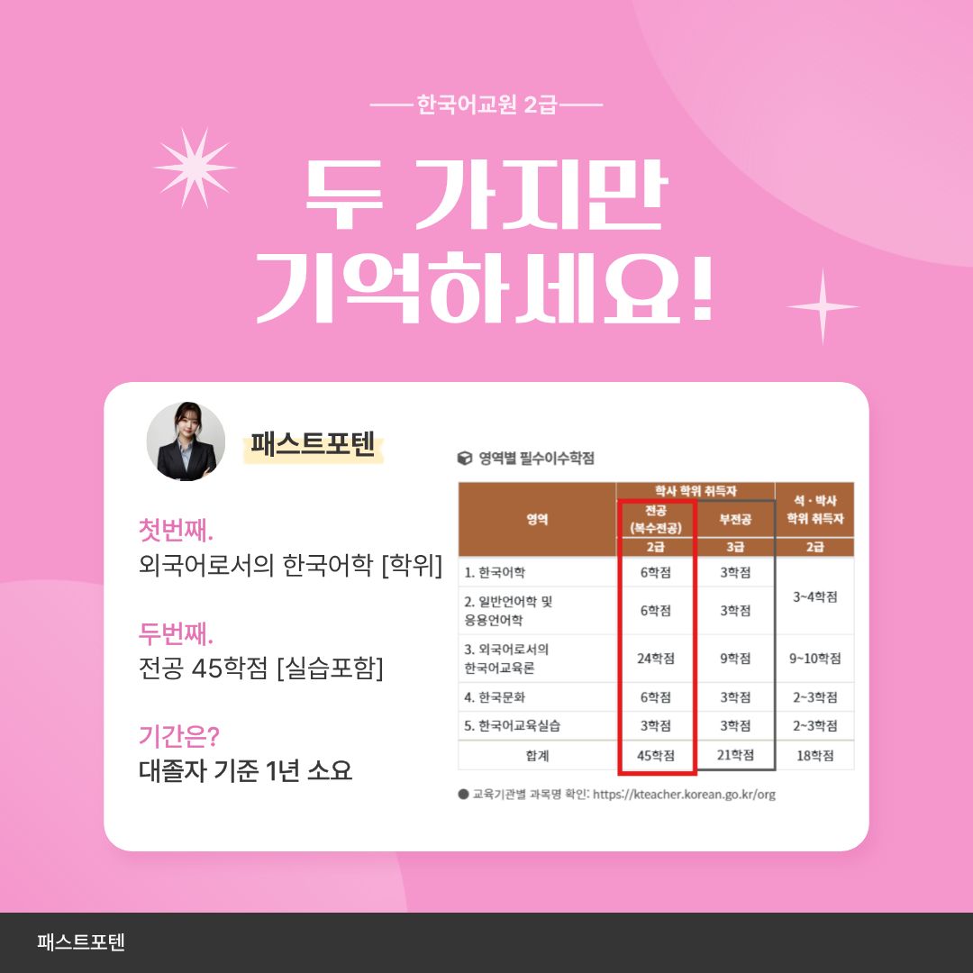 - 한국어교원2급자격증은 국가고시 없이 무시험 발급이 가능한 몇 안 되는 국가자격증입니다.